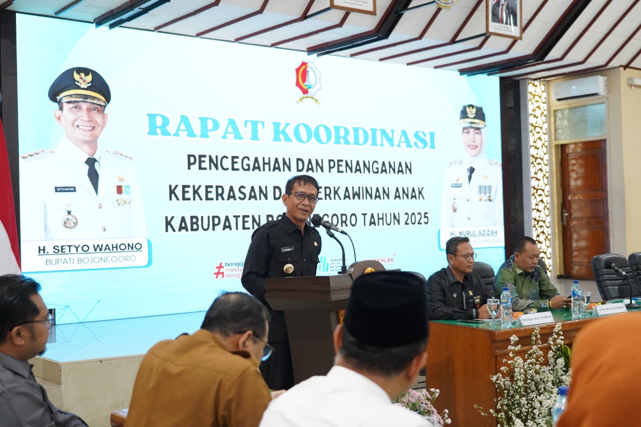 Bojonegoro – Pemerintah Kabupaten Bojonegoro melalui Dinas Pemberdayaan Perempuan, Perlindungan Anak, dan Keluarga Berencana (DP3AKB) menggelar Rapat Koordinasi Pencegahan dan Penanganan Kekerasan serta Perkawinan Anak Kabupaten Bojonegoro Tahun 2025, yang berlangsung di Ruang Angling Dharma Pemkab Bojonegoro, Selasa (7/10/2025).