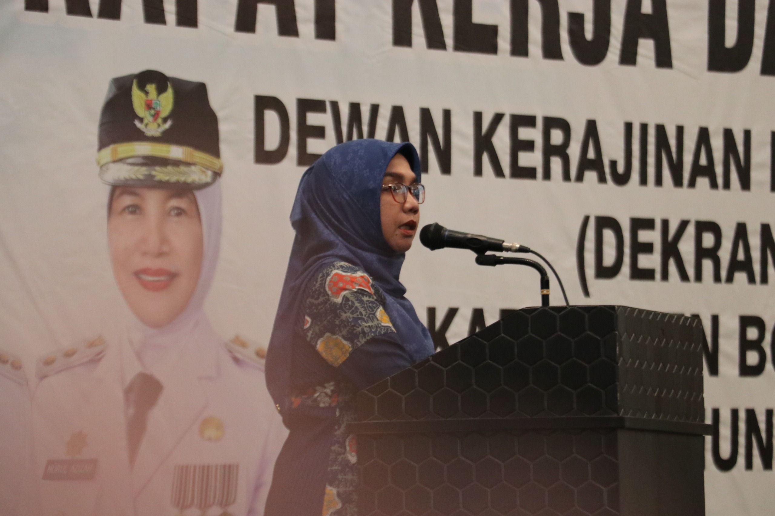 Dalam sambutannya, Ketua Dekranasda Bojonegoro, Cantika Wahono, menegaskan bahwa Dekranasda memiliki masa bakti hingga 2030 dan akan terus memperkuat peran sebagai penggerak ekonomi kreatif. Ia juga mengapresiasi prestasi Bojonegoro yang telah beberapa kali meraih penghargaan, seperti Best Display di Royal Plaza dan Best Element di Jatif Fest, serta berpartisipasi aktif dalam Inacraft dengan dua stan kurasi produk unggulan daerah. “Dekranasda ini tidak hanya menjadi wadah para pengrajin, tapi juga motor penggerak bagi kebangkitan ekonomi kreatif Bojonegoro. Kita ingin karya pengrajin tidak hanya dikenal di pasar lokal dan nasional, tapi juga menembus pasar internasional,” ujar Cantika.