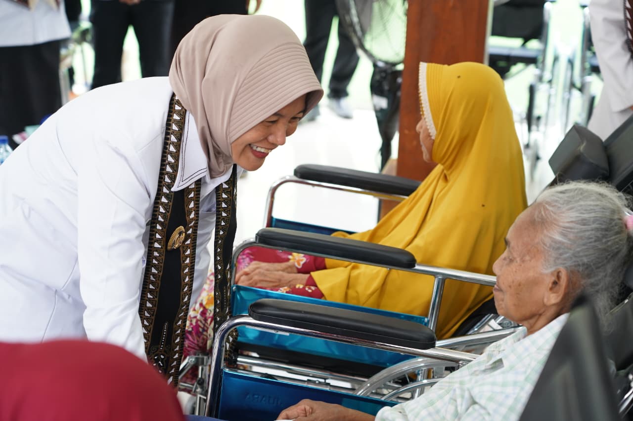 Dalam kesempatan tersebut, Wakil Bupati Ibu Nurul Azizah, turut hadir dan memberikan arahan serta motivasi kepada para penerima bantuan dan keluarga pendamping. Beliau menyampaikan bahwa berdasarkan data Badan Pusat Statistik (BPS), angka harapan hidup masyarakat Bojonegoro kini cukup tinggi, yaitu 72 tahun untuk laki-laki dan 74 tahun untuk perempuan. “Dan begitu ada kursi roda, jadi memudahkan kalau diajak ke mana-mana, itu akhirnya hatinya senang. Mudah-mudahan kursi roda ini nanti akan bermanfaat,” tutur beliau.