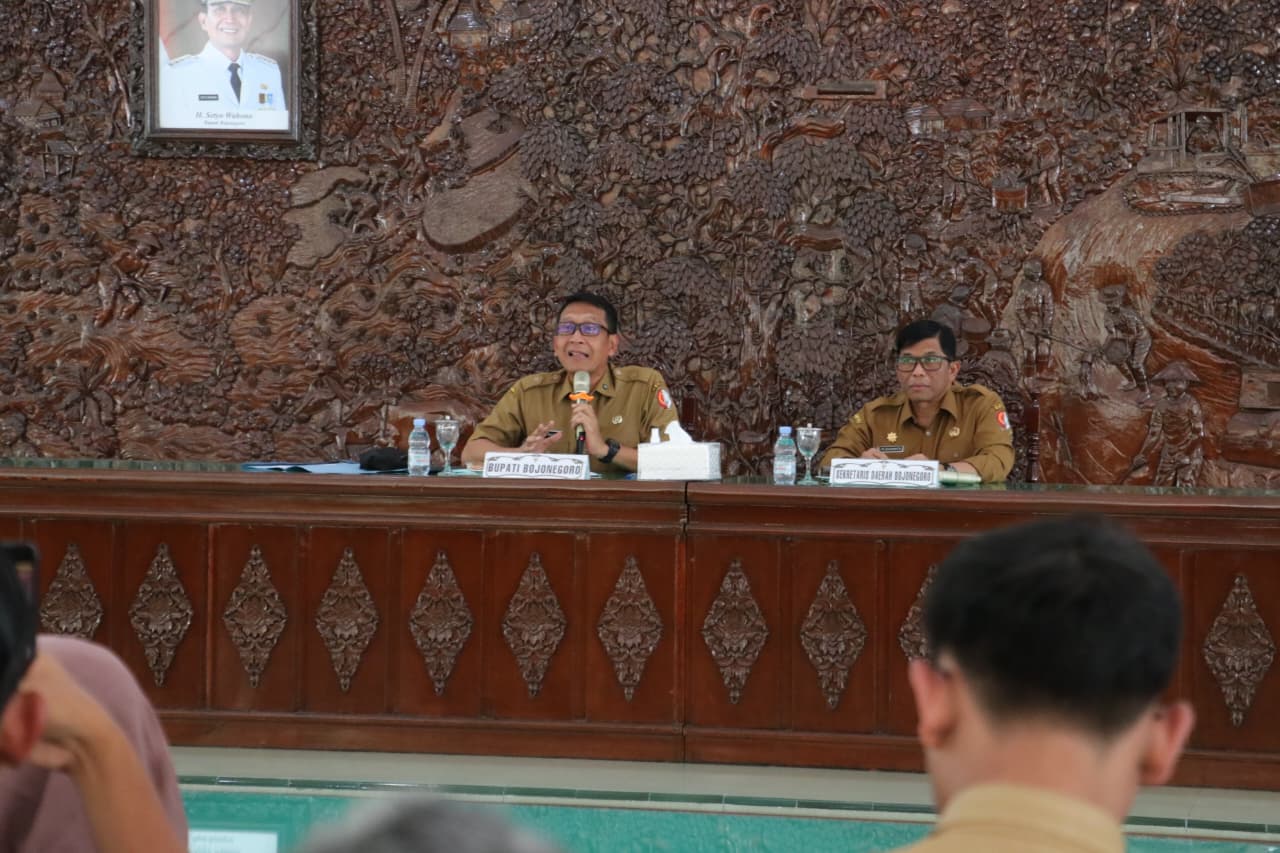 Bojonegoro — Pemerintah Kabupaten Bojonegoro terus memperkuat komitmen percepatan penurunan kemiskinan melalui pemutakhiran Data Tunggal Sosial Ekonomi Nasional (DTSEN). Upaya ini tidak hanya berbasis kebijakan nasional, tetapi juga diperkuat dengan penyerapan aspirasi langsung dari masyarakat melalui Program Sapa Bupati. Hal tersebut disampaikan Kepala Dinas Sosial Kabupaten Bojonegoro Agus Susetyo Hardiyanto dalam kegiatan Sosialisasi dan Percepatan Pemutakhiran DTSEN yang digelar pada Senin siang, 19 Januari 2026 di Pendopo Malowopati.
