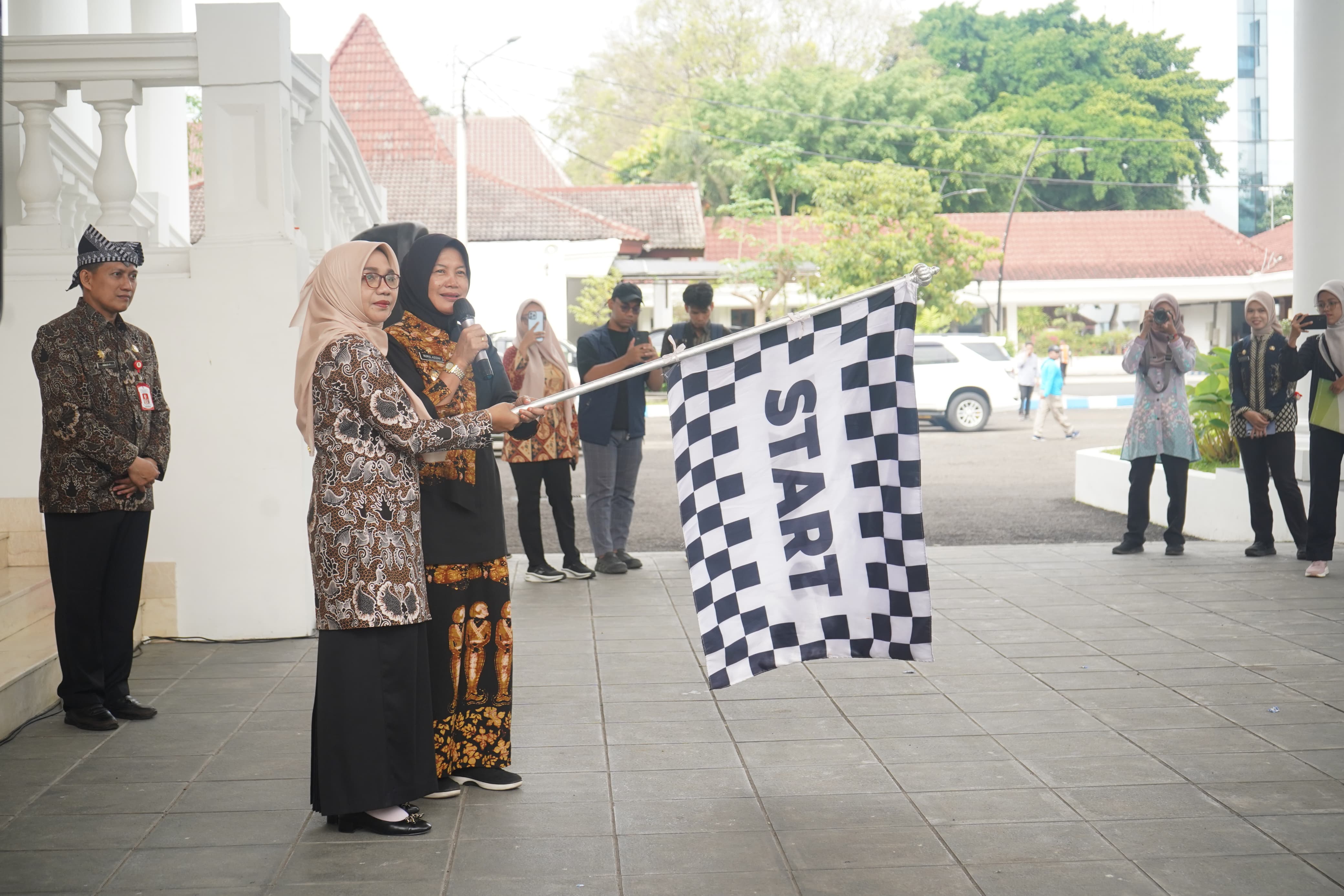 Bupati Bojonegoro Setyo Wahono di dampingi Wabup Nurul Azizah dan Ketua TP PKK Bojonegoro Hadir dan memberangkatkan peserta Pelaksanaan Pekan Olahraga Provinsi...