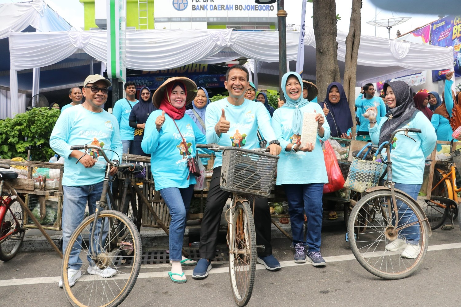 Sabtu, (24/05), Setyo Wahono dan Nurul Azizah borong dagangan Ibu-ibu penjual Rengkek (red:penjual sayur keliling) saat acara Hari Jadi ke-29th Bank Daerah...